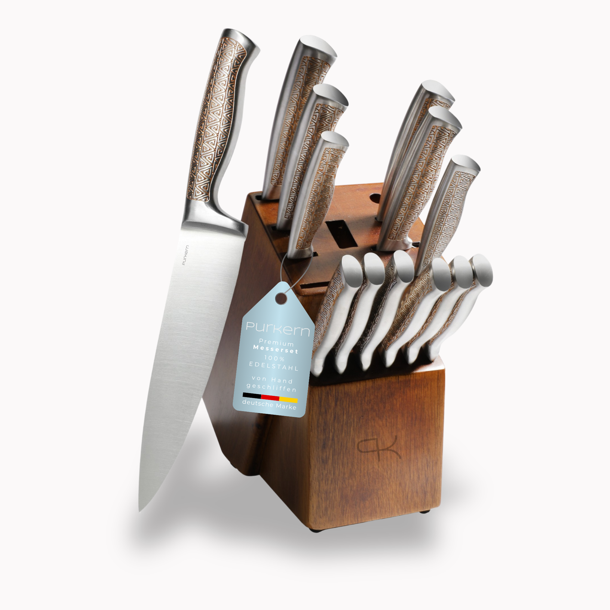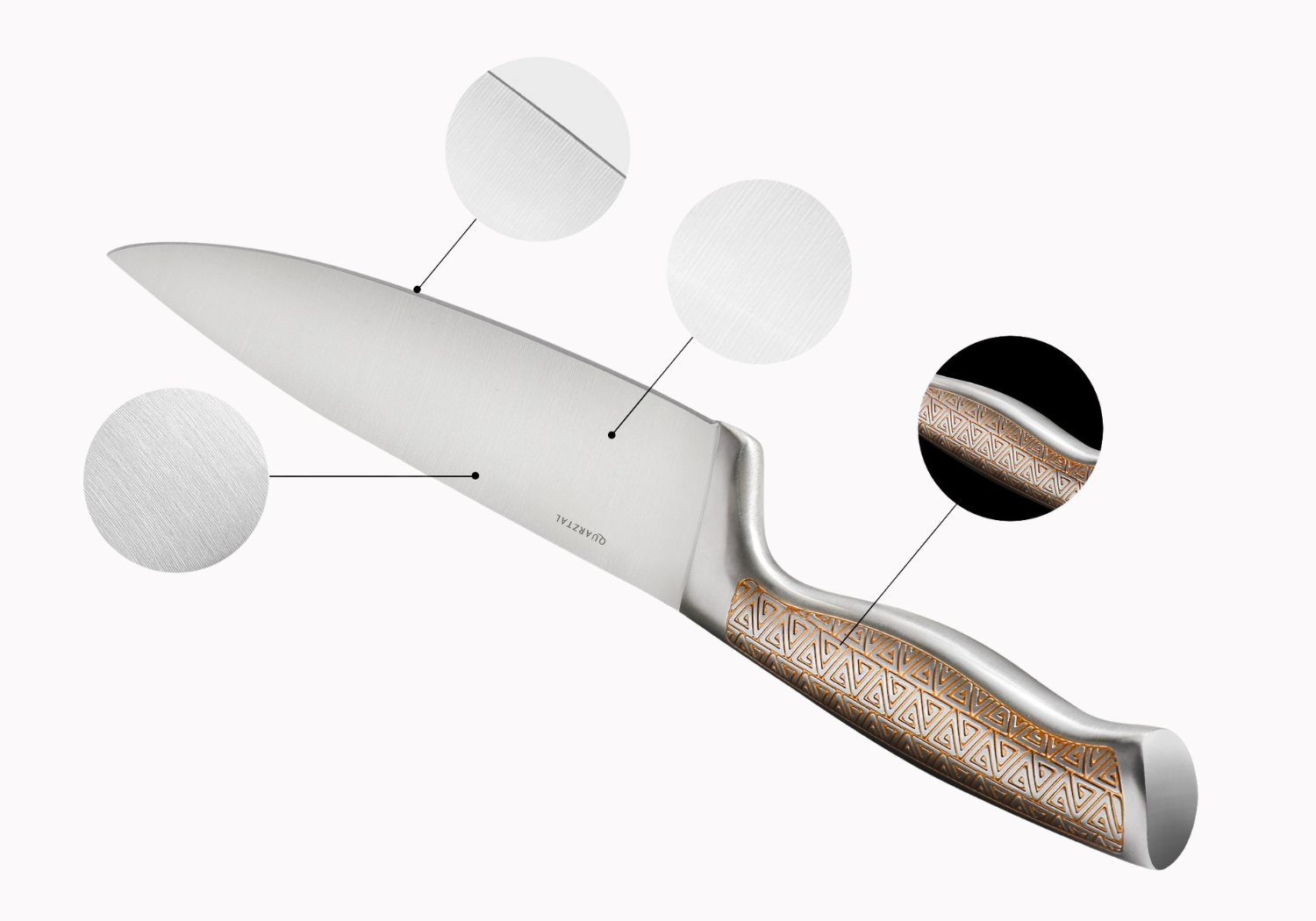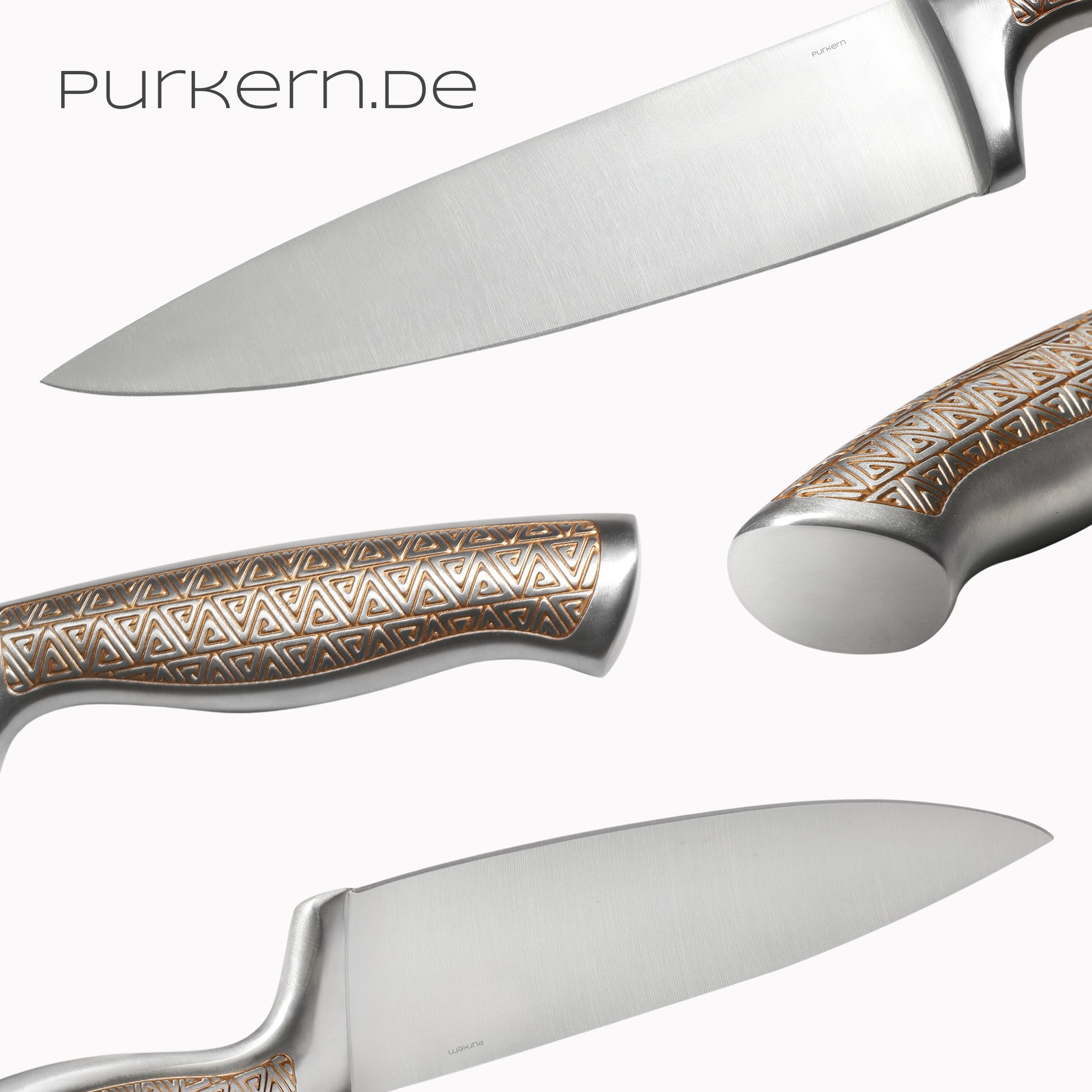 Unsere Messer bestehen zu 100 % aus Edelstahl – kein Plastik, kein Holz. Langlebig, hygienisch und zeitlos im Design. Qualität ohne Kompromisse für deine Küche.