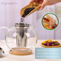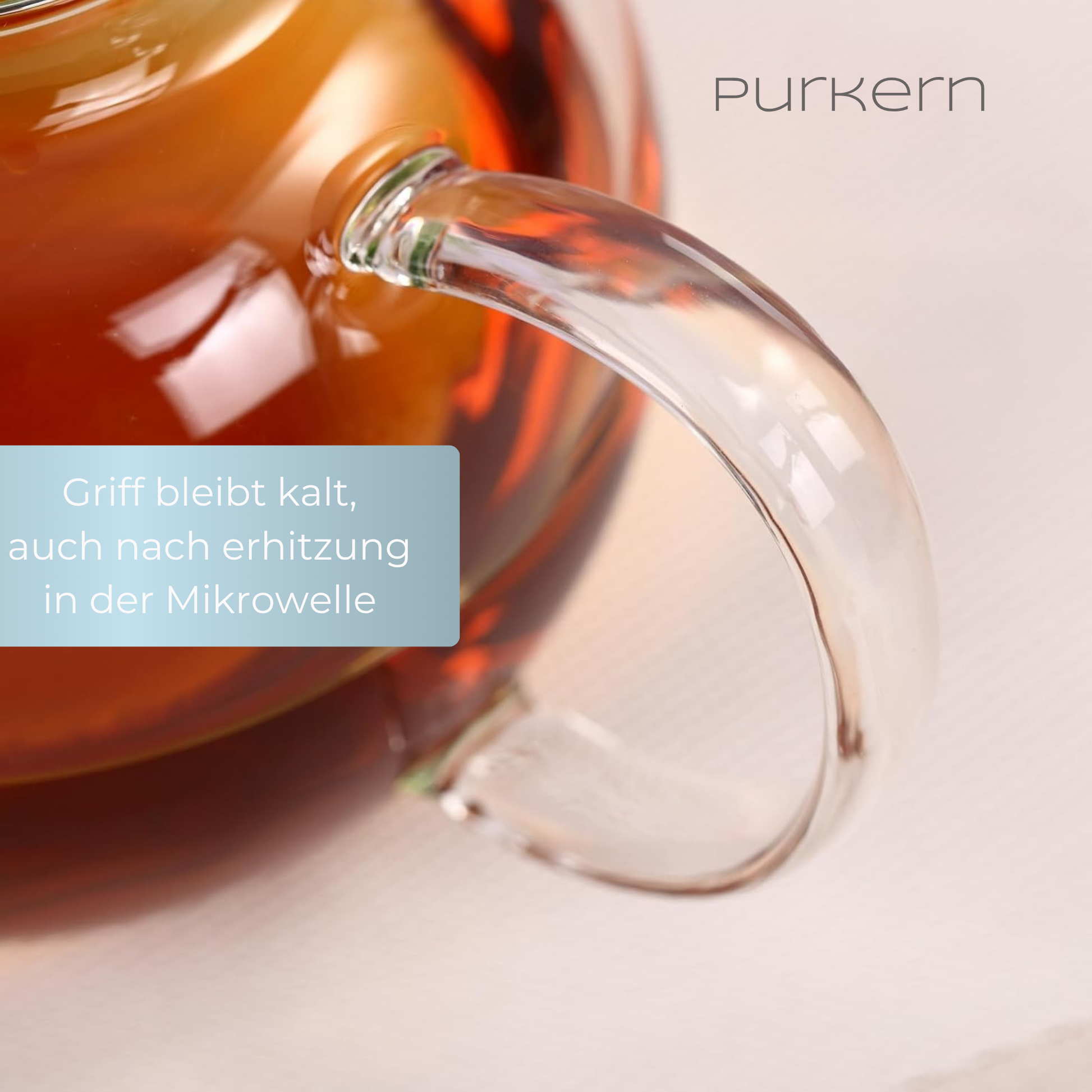 Die PURKERN Teekanne besteht aus hochwertigem Glas & Edelstahl – für den perfekten Teegenuss, egal ob warm oder kalt