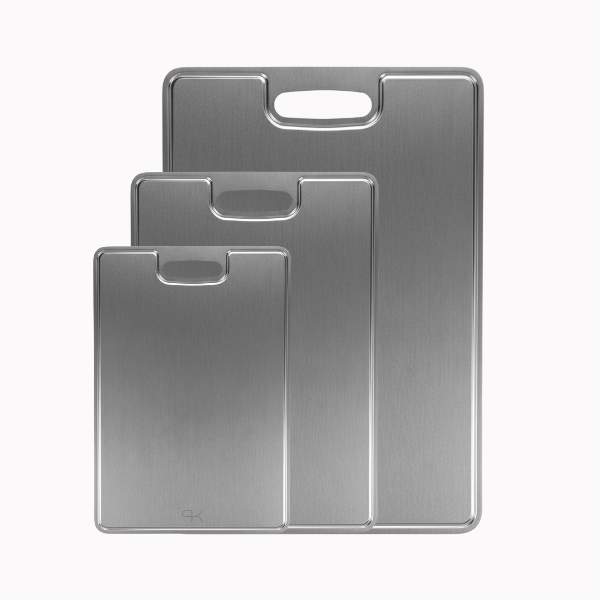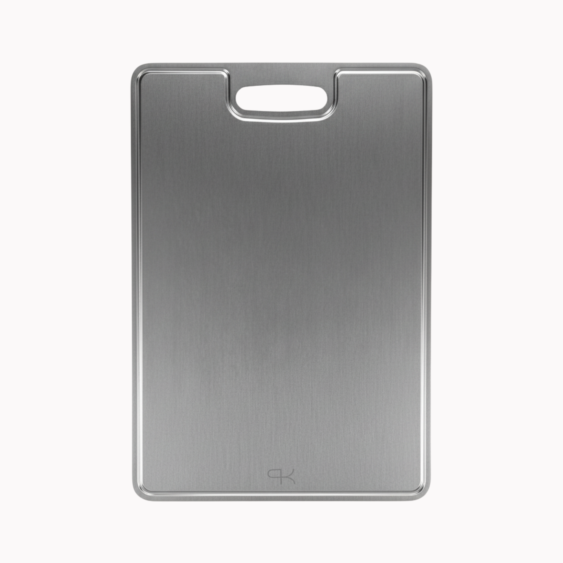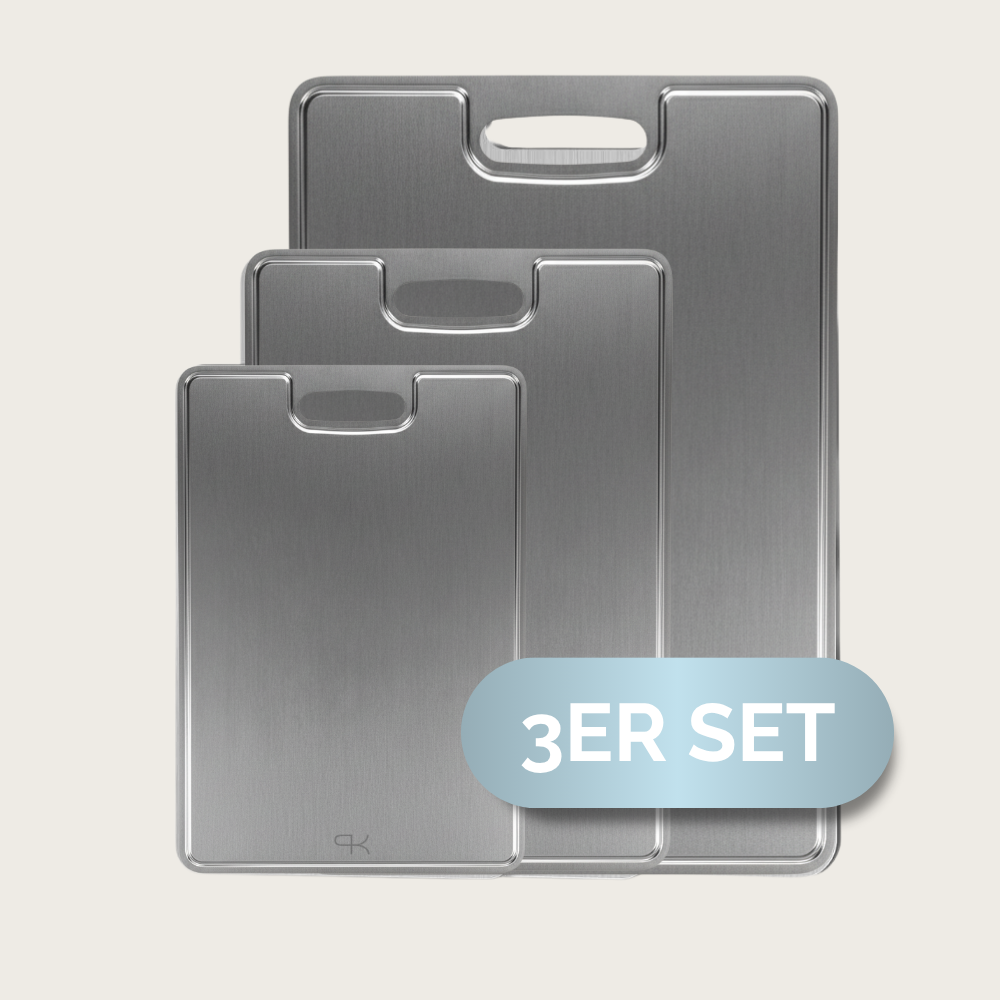 Titan ist das einzige Material, das alle Eigenschaften vereint, die ein Schneidebrett auszeichnen sollte. Im Gegensatz zu Glas oder Keramik besitzt es einen geringeren Härtegrad als deine Messer – dadurch bleiben die Klingen scharf und ihre Schneidleistung langfristig erhalten. Dank seiner außergewöhnlichen Bioverträglichkeit wird es sogar in der Medizin verwendet – etwa für chirurgische Instrumente oder Implantate.